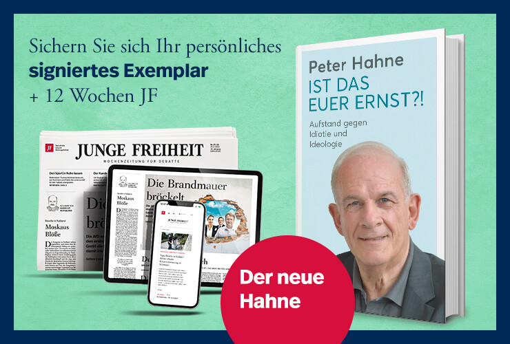 Ja, ich bin einverstanden, daß mir schriftlich, per E-Mail oder telefonisch weitere interessante Angebote der Jungen Freiheit Verlag GmbH & Co. KG unterbreitet werden und daß die von mir angegebenen Daten für Beratung, Werbung und zum Zweck der Marktforschung durch den Verlag gespeichert und genutzt werden. Vertrauensgarantie: Eine Weitergabe meiner Daten an unberechtigte Dritte erfolgt nicht. Meine Einwilligung kann ich jederzeit mit Wirkung für die Zukunft widerrufen. Weitere Information zum Datenschutz finde ich unter