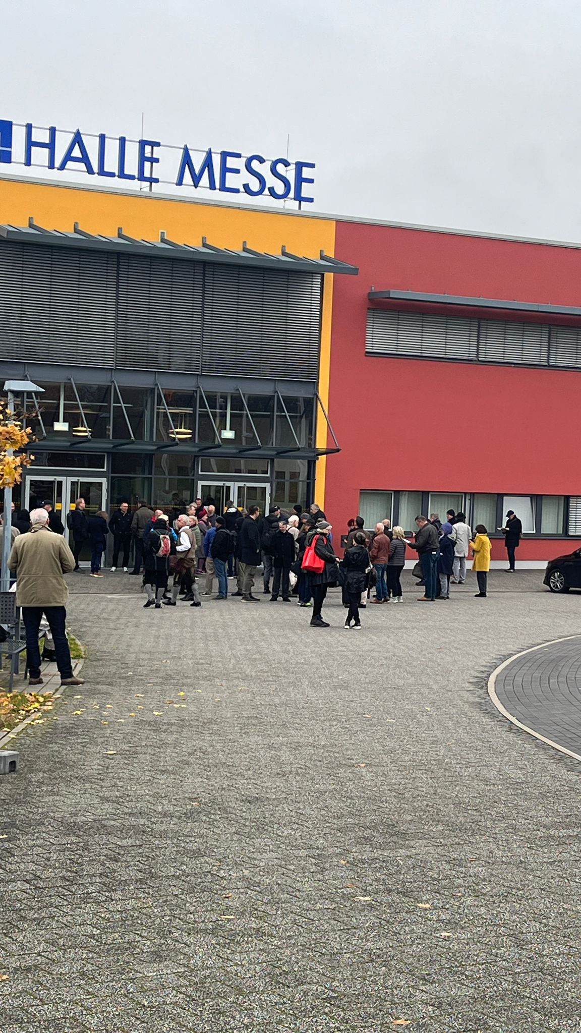 Derzeit sind alle Zugänge zur Messe gut erreichbar. Die Polizei ist vor Ort und hat die Messehalle mit Gittern umsperrt ‒ nur wer ein Ticket vorzeigen kann, kommt rein. Gegendemonstranten sind hingegen noch nicht zu sehen.