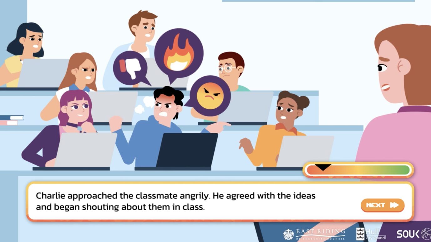 Der Spieler kann dabei zwischen zwei Figuren wählen, einem männlichen jungen weißen Briten oder einem weiblichen, und bewegt sich anschließend durch ein simuliertes soziales Netzwerk, in dem er Entscheidungen treffen muß. Etwa Dinge wie „Ein Freund bittet dich, ein Video herunterzuladen. Was tust du?“ Rasch wird klar: Überall im Netz verbergen sich „rechtspopulistische“, gar „faschistische“ Kräfte, und wer sich mit ihnen einläßt, verliert das Spiel.