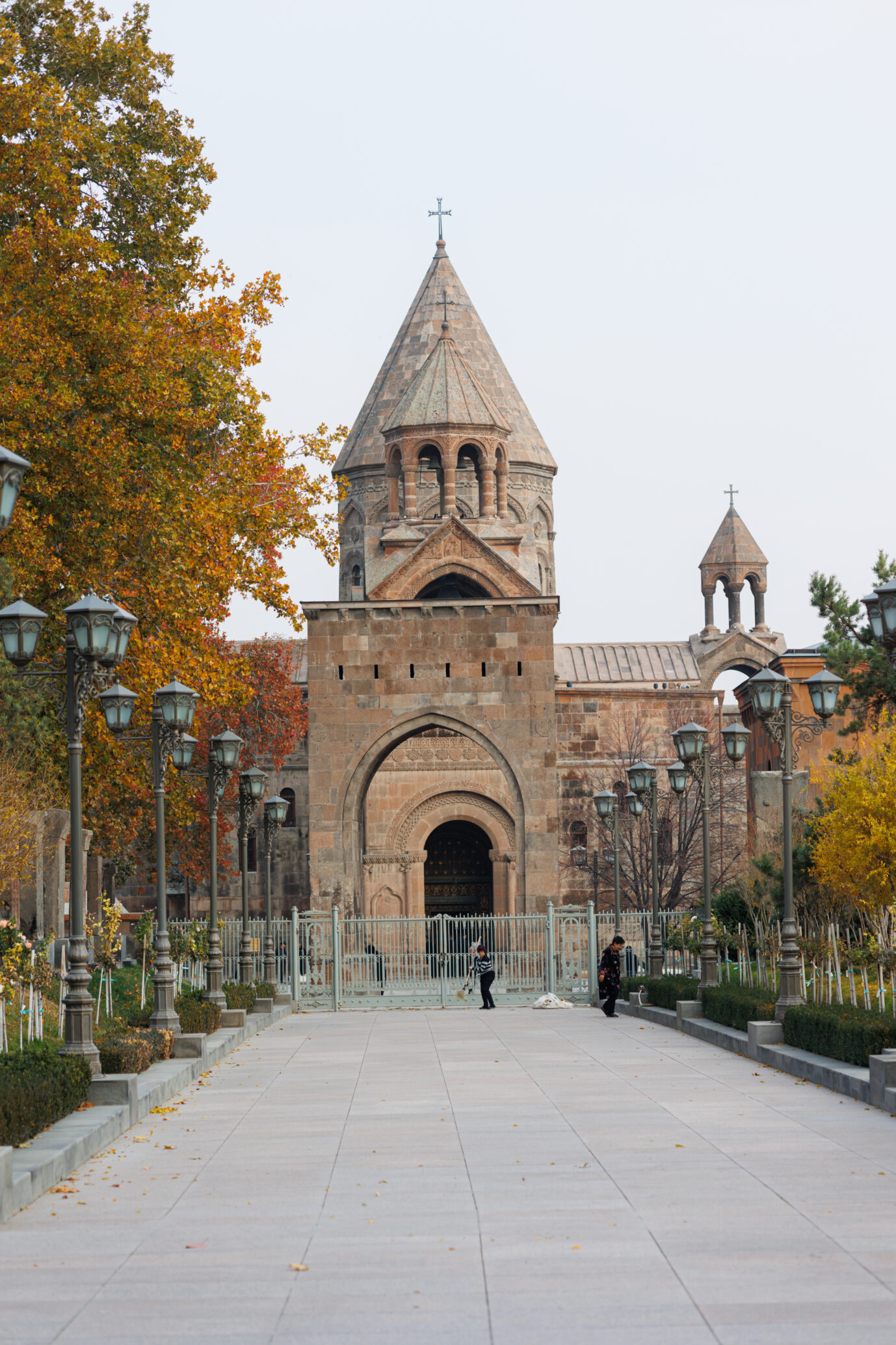 Der Smog der Stadt schluckt den Ararat. Laster aus Sowjetzeiten tuckern geschäftig über Paradeplätze. Baulärm. Der Staub in der Luft wundert niemanden. Autos verstopfen jeden Winkel von Jerewan. Passanten schlendern in Todesverachtung über dicht befahrene Kreuzungen. Streuner mischen sich in die Menge. Aus dem Trubel ragen immer wieder glühend rot die Kirchen hervor. Es ist der Vulkanstein, der sie leuchten macht, so als kämen sie direkt aus dem gierigen Schlund der Erde. Selbst Schulkinder bekreuzigen sich beim Anblick der andächtig in sich versunkenen Bauten.