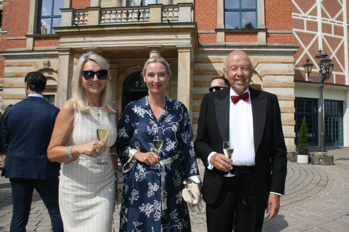 Drei Menschen stehen nebeinander: Müller-Chef Theo Müller (rechts) mit AfD-Chefin Alice Weidel (mitte)