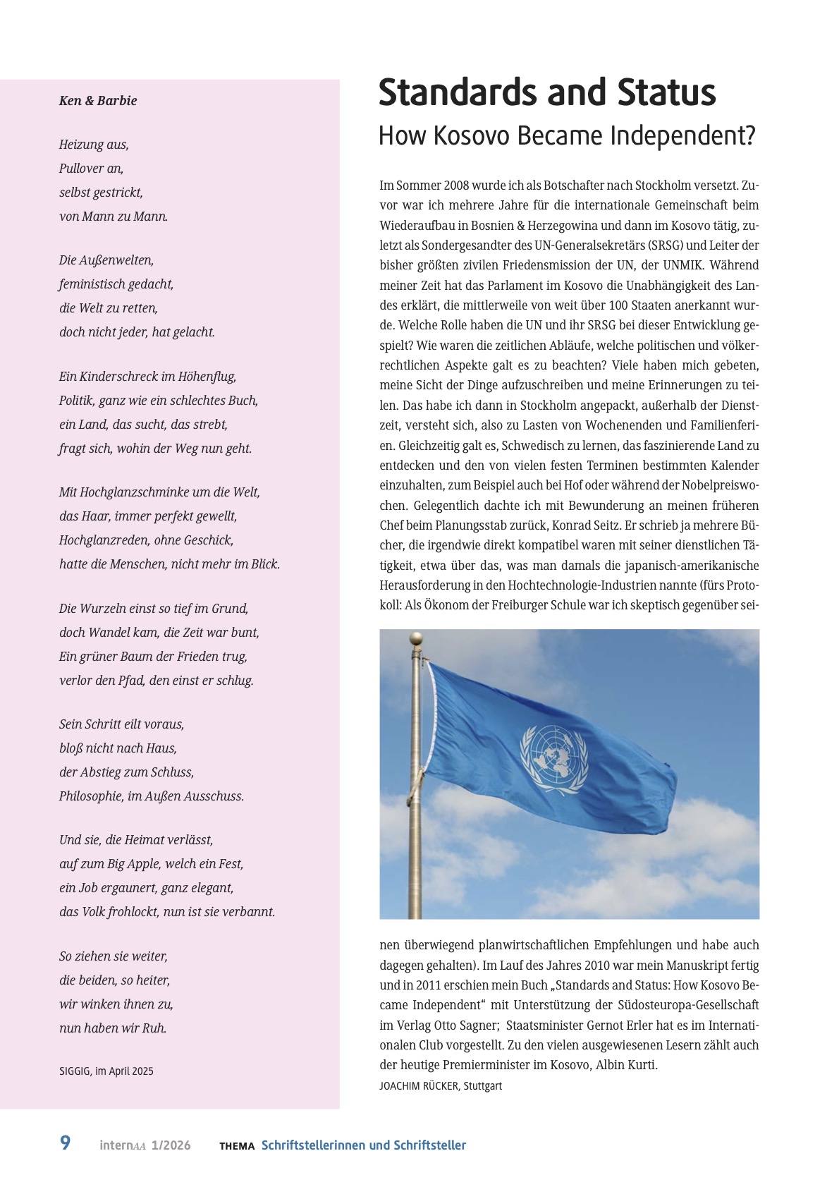 BERLIN. Das Auswärtige Amt hat die Januar-Ausgabe 2026 seines Mitarbeitermagazins internAA nachträglich verändert. Ein satirisches Gedicht mit dem Titel Ken & Barbie über die früheren Grünen-Minister Annalena Baerbock und Robert Habeck wurde aus der digitalen Fassung des Heftes entfernt und durch einen Entschuldigungstext ersetzt.