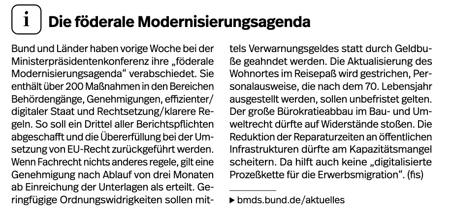 Einige von diesen Forderungen sind auch Teil der „föderalen Modernisierungsagenda“, welche Bund und Länder vorige Woche verabschiedet haben. Aber „Papier ist geduldig“, wie es in der KAS-Analyse zu Recht heißt. Bisherige Erfahrungen geben Anlaß zur Skepsis. So ist die Zahl der Staatsdiener nach einem privatisierungsbedingten Rückgang seit 2008 wieder deutlich gestiegen. Sie liegt derzeit bei 5,4 Millionen, was zwölf Prozent aller Erwerbstätigen entspricht. Am stärksten war der Zuwachs in den vergangenen zehn Jahren mit 24 Prozent bei den Kommunen, gefolgt von den Ländern mit einem Plus von zwölf Prozent und dem Bund (plus vier Prozent).